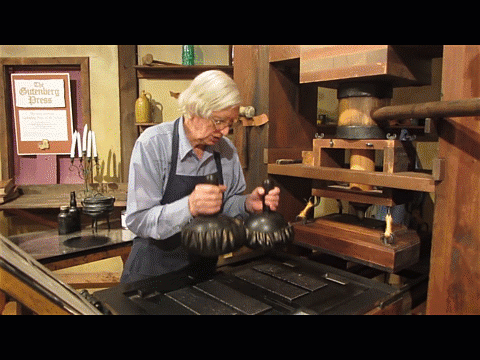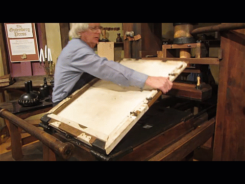 - "How a Gutenberg printing press works" (https://youtu.be/DLctAw4JZXE) [youtube]